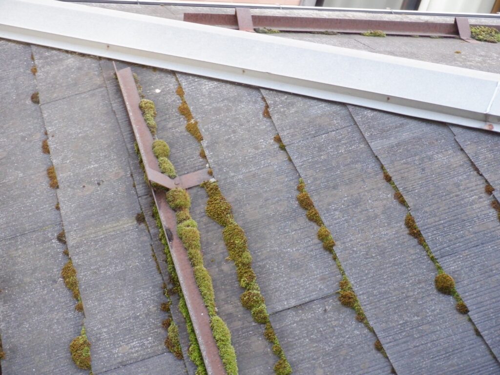 コケが根を張ると、屋根の表面を傷つけ、防水機能を低下させます