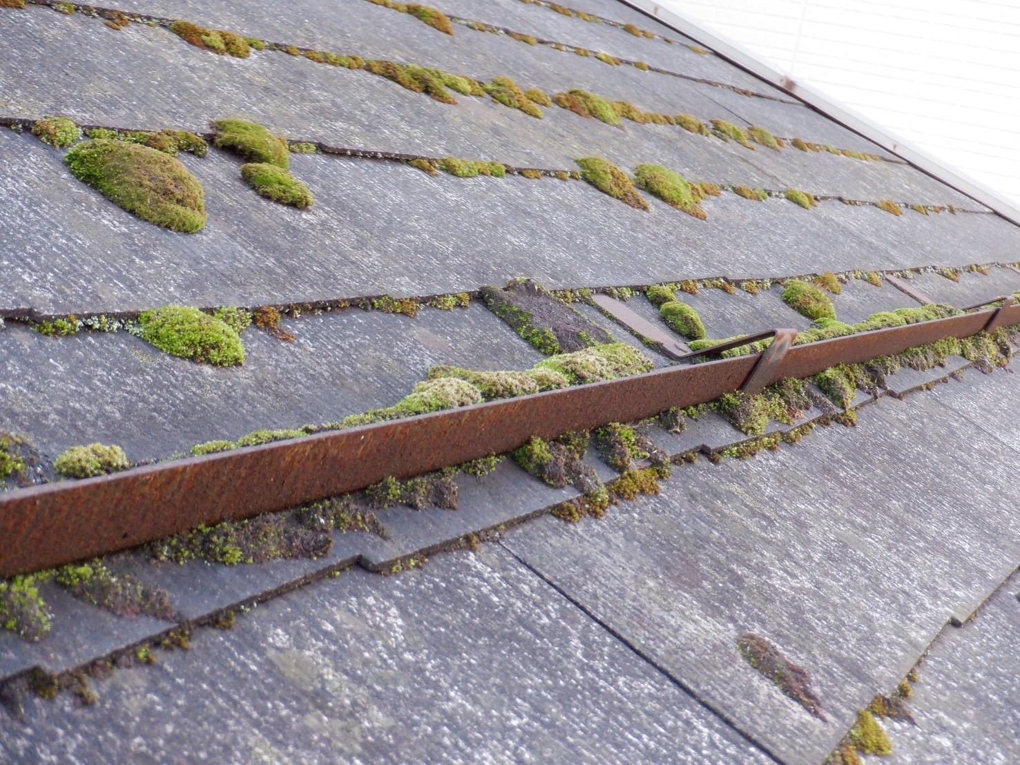 コケが根を張ると、屋根の表面を傷つけ、防水機能を低下させます