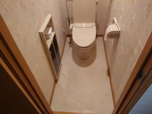 トイレ入替、クッションフロアー貼替、給湯器交換を行いました。